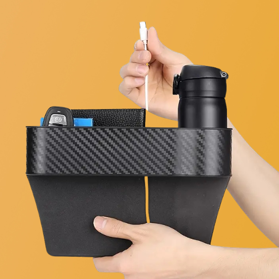 A multifunctional car seat organizer that fills gaps, provides extra storage, and includes a cup holder. Keeps your essentials within reach while driving.